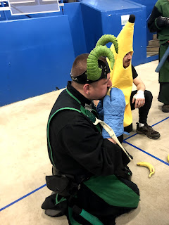 Sir Aeston of the many belts, runs off with a sponge full of water |